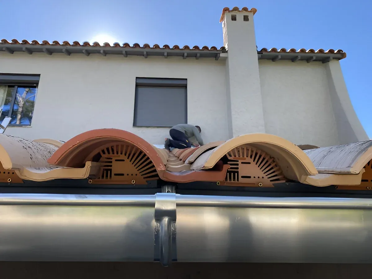 Remplacement de tuiles, pose de gouttières zinc/PVC, chéneaux, abergements, noues et soudures.